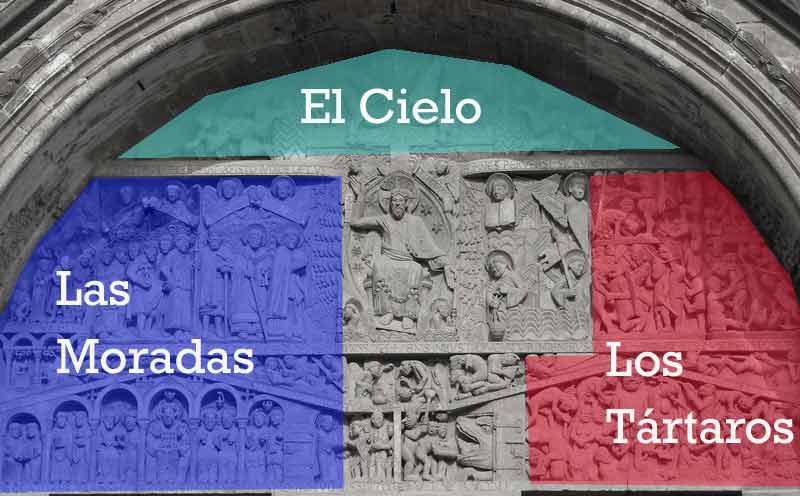 (2). El tímpano incluye tres mundos distintos: los tártaros, las moradas (o Paraíso) y el Cielo. |